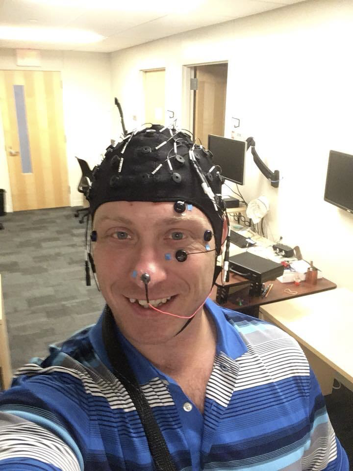Our experiments generally apply computer-based cognitive tasks, both alone and in conjunction with electroencephalography (EEG). The use of EEG allows us to record the tiny voltage potentials that are produced by the brain, which enables us to study the time course of neural processes with millisecond precision. This year, we are also applying machine learning techniques (similar in concept to "AI") to uncover meaningful patterns within our EEG data and determine which specific items a participant is holding in memory or thinking of during a cognitive task.